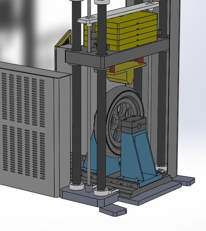 4、帶有二次沖擊裝置,以實現(xiàn)對車輪的二次沖擊,同時配備有30°沖擊支架,用戶可根據(jù)不同的標準選用。采用防護網,保證試驗安全。
