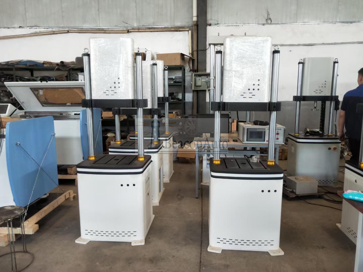主機(jī)為雙立柱框架式結(jié)構(gòu), 伺服直線作動(dòng)器下置于主機(jī)框架上部。夾頭分別安裝在橫梁和作動(dòng)器活塞桿頂端。主機(jī)橫梁調(diào)整采用電動(dòng)絲杠升降,傳動(dòng)單元隱藏在橫梁內(nèi)部,外觀整潔,主機(jī)下部工作臺(tái)為分體式,不需要刻意拆掉,整機(jī)防止在客戶Z定的臺(tái)面上。手動(dòng)夾緊、彈性松開式結(jié)構(gòu),保證試驗(yàn)過程中橫梁穩(wěn)固可靠,同時(shí)保證在非試驗(yàn)狀態(tài)時(shí)橫梁保持鎖止不動(dòng)。立柱外表面采用電鍍硬鉻處理,可有效增加立柱抗磨損能力,提高防腐蝕能力,同時(shí)增加主機(jī)外形的美觀程度。