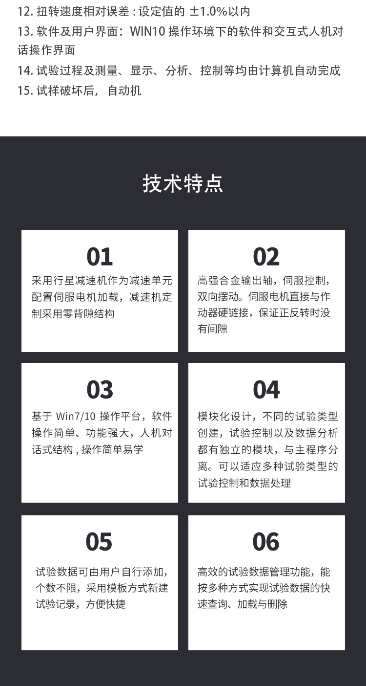 ?采用人機交互方式分析計算測試材料的機械性能指標,試驗結束時系統(tǒng)會自動計算最大扭矩、抗扭強度、上下屈服扭矩、規(guī)定非比例扭矩、切變模量等,在自動分析的基礎上,還可以人工干預修正分析結果,提高分析的準確性