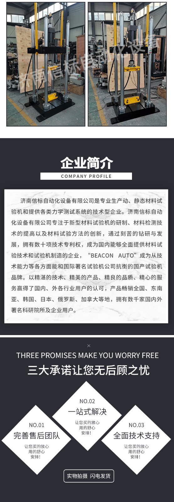 6,框架形式:雙立柱;立柱距離:≥600mm;上下夾頭間距:50~600 mm;