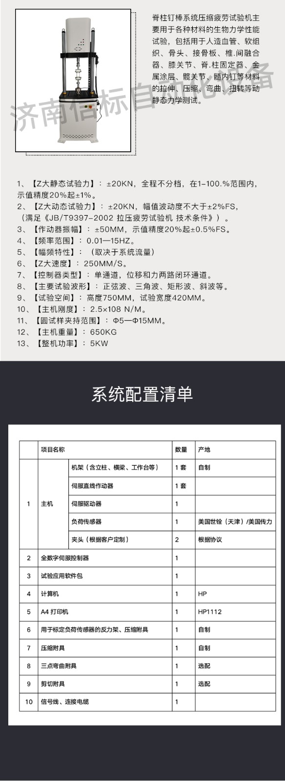 椎間融合器壓縮疲勞試驗機脊柱固定器拉伸壓縮彎曲扭轉(zhuǎn)測試