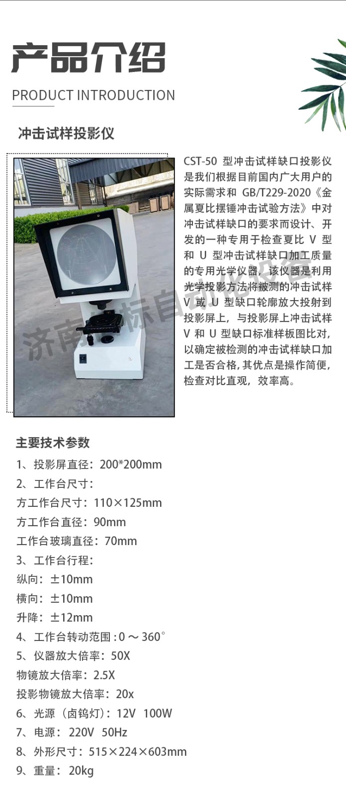 沖擊試樣缺口投影儀、夏比投影儀