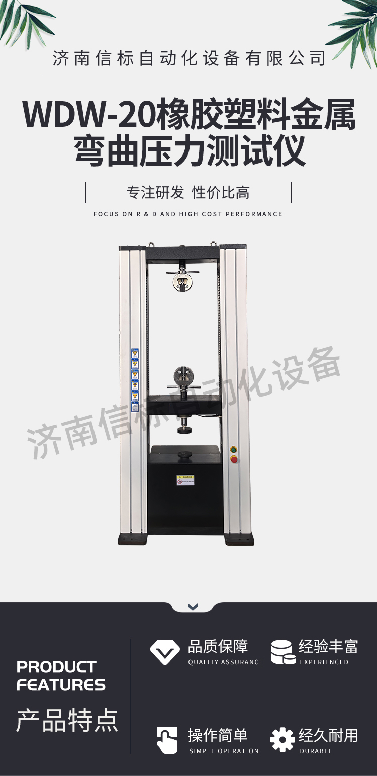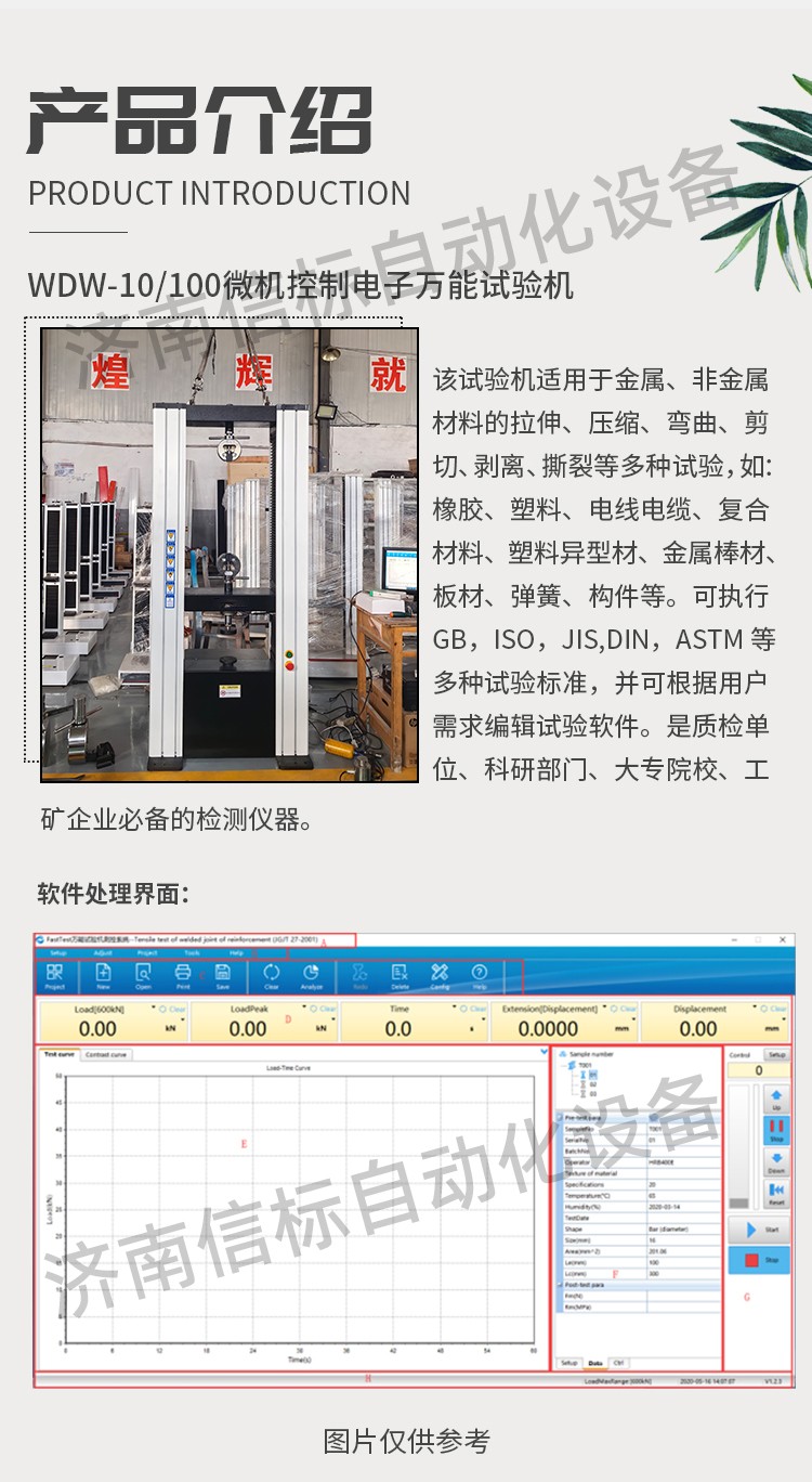 該試驗(yàn)機(jī)適用于金屬、非金屬材料的拉伸、壓縮、彎曲、剪切、剝離、撕裂等多種試驗(yàn),如:橡膠、塑料、電線電纜、復(fù)合材料、塑料異型材、金屬棒材、板材、彈簧、構(gòu)件等。可執(zhí)行GB,ISO,JIS,DIN,ASTM等多種試驗(yàn)標(biāo)準(zhǔn),并可根據(jù)用戶需求編輯試驗(yàn)軟件。是質(zhì)檢單位、科研部門、大專院校、工礦企業(yè)必備的檢測(cè)儀器。
