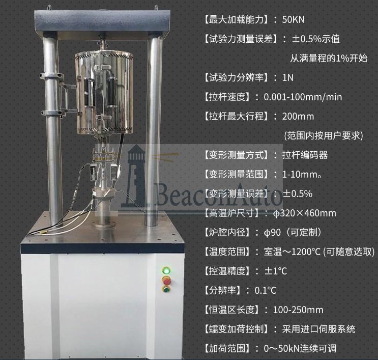 塑料管材蠕變?cè)囼?yàn)機(jī)產(chǎn)品用途:塑料管材蠕變?cè)囼?yàn)機(jī)是一種由計(jì)算機(jī)管理測(cè)控的試驗(yàn)儀器。該試驗(yàn)機(jī)配置了高穩(wěn)定性、高精度伺服加荷系統(tǒng),可對(duì)高溫合金、鈦合金、其它黑色金屬、有色金屬的棒材及板材試樣進(jìn)行300~1100℃,試驗(yàn)時(shí)間不超過(guò)15000小時(shí),總伸長(zhǎng)率不超過(guò)1%范圍內(nèi)的標(biāo)準(zhǔn)高溫持久、標(biāo)準(zhǔn)蠕變試驗(yàn)及高溫拉伸、室溫拉伸、周期循環(huán)加載等試驗(yàn)。根據(jù)用戶要求還可以增加應(yīng)力腐蝕測(cè)試系統(tǒng)。具有功能齊全、顯示直觀、維護(hù)方便及造型美觀等特點(diǎn)。整機(jī)由主機(jī)、電器柜、集散控制系統(tǒng)所組成。