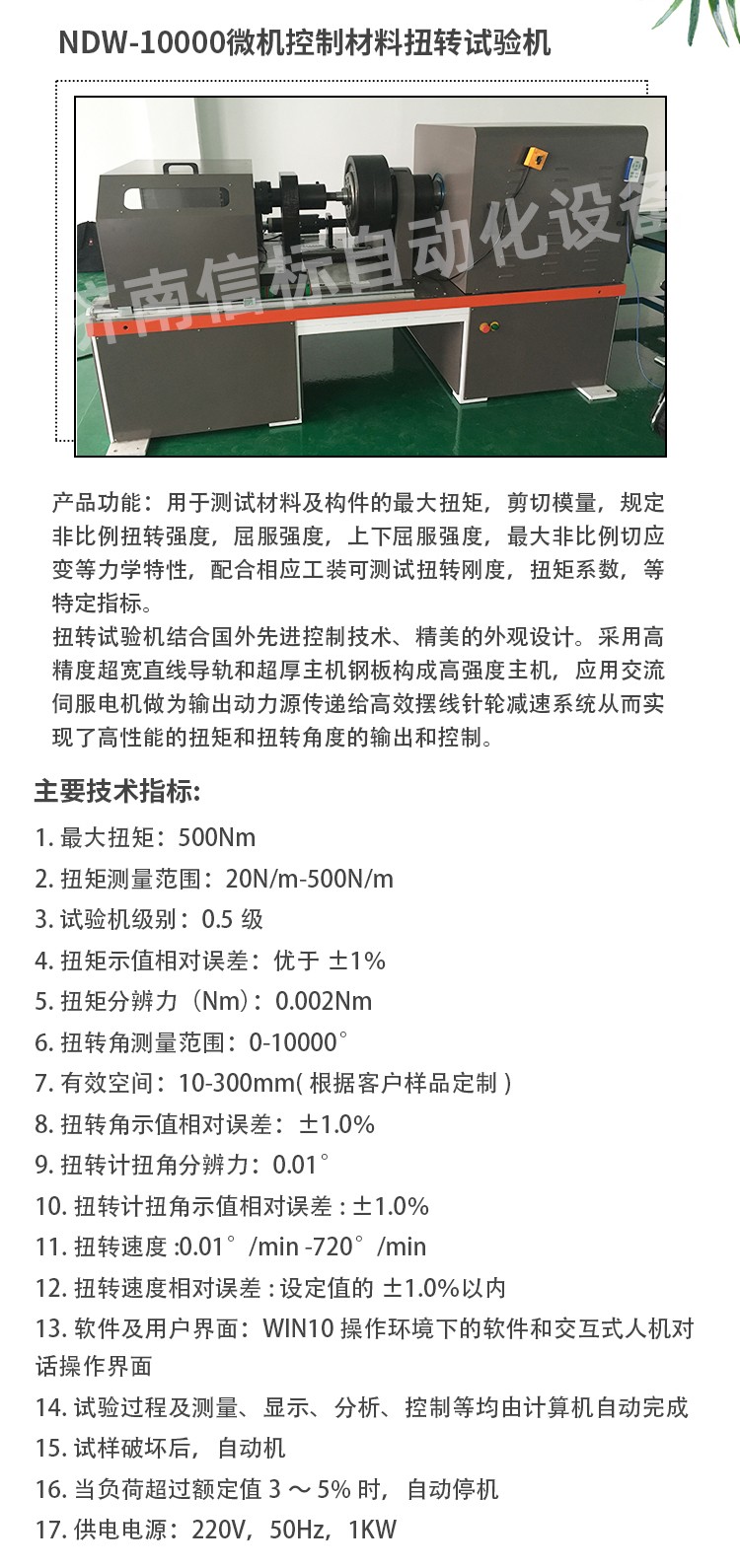 試驗(yàn)機(jī)專業(yè)軟件可實(shí)現(xiàn)自動(dòng)求取最大扭矩、抗扭強(qiáng)度、上下屈服扭矩、規(guī)定非比例扭矩、切變模量等數(shù)據(jù)和指標(biāo),計(jì)算機(jī)控制系統(tǒng)對(duì)試驗(yàn)過(guò)程的控制和數(shù)據(jù)處理符合相應(yīng)國(guó)際標(biāo)準(zhǔn)的要求,多種數(shù)據(jù)輸出方式,標(biāo)準(zhǔn)報(bào)表,Excel,word,開(kāi)放式數(shù)據(jù)庫(kù)MDB及原始數(shù)據(jù)源txt形式本機(jī)無(wú)污染、噪音低,效率高,具有較寬的調(diào)速范圍。本機(jī)適用于各種金屬、非金屬及復(fù)合材料的力學(xué)性能指標(biāo)的測(cè)試,完全符合國(guó)家相關(guān)標(biāo)準(zhǔn)的要求。