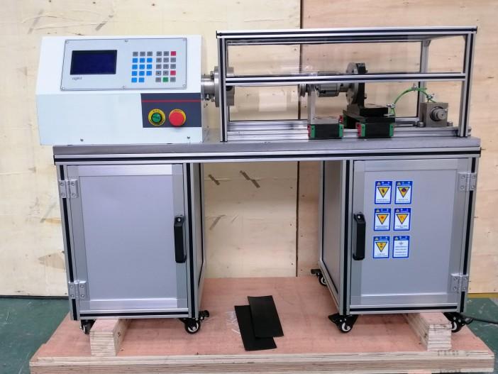 該機型采用高性能交流電機作為動力輸出,配以高精度減速電機,從而使動力能平穩(wěn)輸出。電機的驅(qū)動采用高可靠、高穩(wěn)定變頻器,提高機器運行的平順性,降低功耗。一側(cè)夾頭固定在電機輸出軸,另一側(cè)夾頭固定在可移動軸承座。移動座采用直線軸承,摩擦阻力小,保證了軸向移動的平直度。軸向拉緊力采用砝碼施加,通過10:1的L型杠桿,將作用力施加在線材上。
