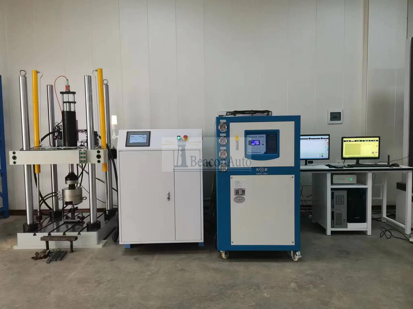 預(yù)埋槽道疲勞試驗(yàn)機(jī)主要由一臺(tái)主機(jī)(上置100kN伺服直線作動(dòng)器)、液壓夾頭及其液壓驅(qū)動(dòng)模塊、一套恒壓伺服泵站(流量36L/min、系統(tǒng)壓力21MPa)、全數(shù)字單通道伺服控制器以及計(jì)算機(jī)打印機(jī)、相關(guān)試驗(yàn)軟件、其它必要的附件等組成。