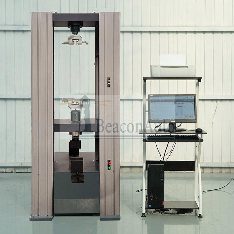 道橋用防水涂料拉伸強度試驗機,計算機系統(tǒng)通過全數(shù)字控制器,經(jīng)調(diào)速系統(tǒng)控制伺服電機轉(zhuǎn)動,經(jīng)減速系統(tǒng)減速后通過精密滾珠絲杠副帶動移動橫梁上升、下降,完成試樣的拉伸、壓縮、彎曲、剪切等多種力學(xué)性能試驗.
